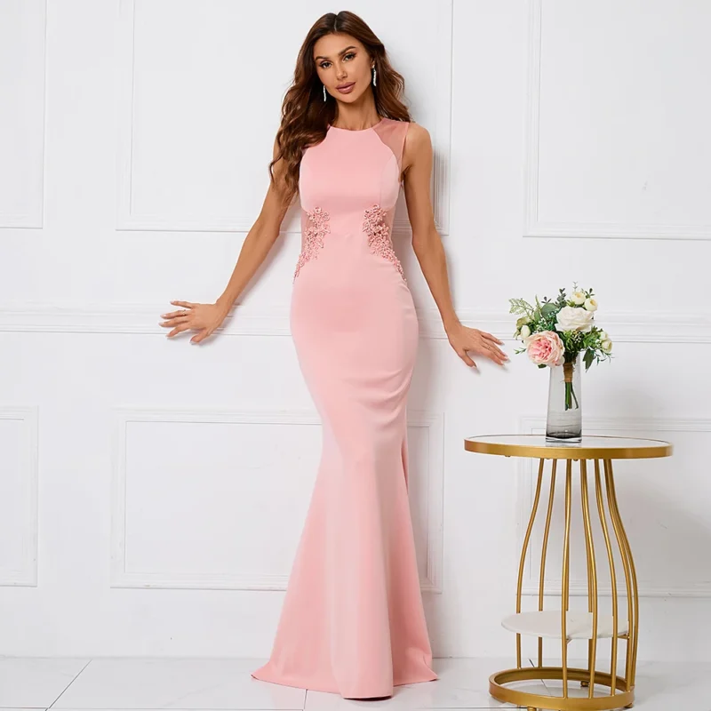 $81.99Pink Beaded O-Neck Mermaid Maxi Dress