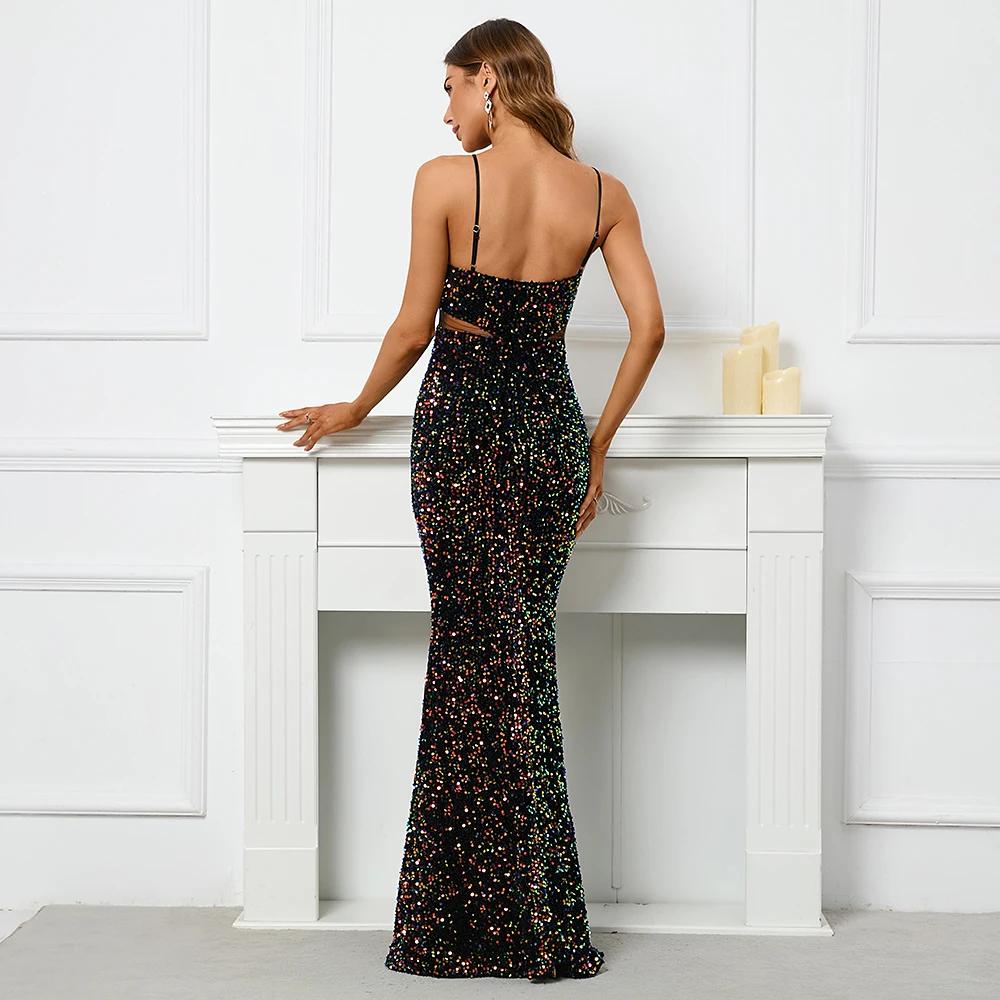 Backless Sequin Off Shoulder Maxi Dress