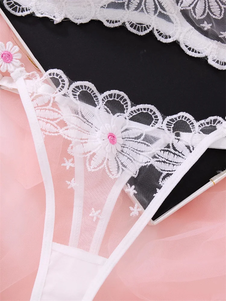 Elegant White Floral Lace Ultra-Thin Lingerie Set